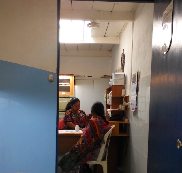 Die Clinica selber ist in den hinteren Räumen eines kleinen, schön begrünten Innenhofes gelegen. Unter den ausladenden Ästen eines Avocadobaumes geht man zu den Räumlichkeiten durch und wird von der einheimischen Krankenschwester Rosa sogleich freundlich empfangen. Wir waren von der guten Ausstattung der kleinen Klinik begeistert. Es steht ein EKG und Ultraschallgerät zur Verfügung. Auch wenn das Ultraschallgerät keine Dopplerfunktion hat, ist die Auflösung doch relativ gut und bei so mancher Diagnosestellung war es sehr hilfreich. Das Sonogerät teilen sich die Ärzte mit den Hebammen von ACOTCHI, einem lokalen Hebammenprojekt. Das Projekt wird von dem Verein VMM mit unterstützt, so befinden sich die Räumlichkeiten der Hebammen auch mit auf dem Klinikgelände.